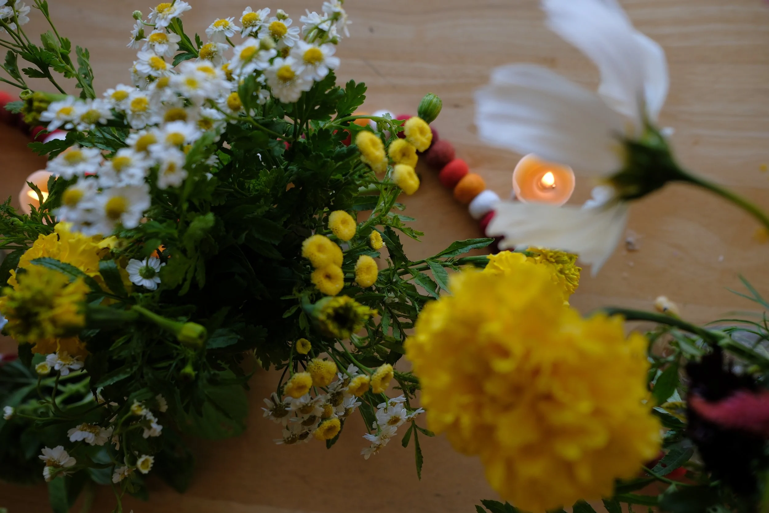 A dinner party with candles lit & flowers aplenty, harvested fresh from the garden beds at City Farm SLO