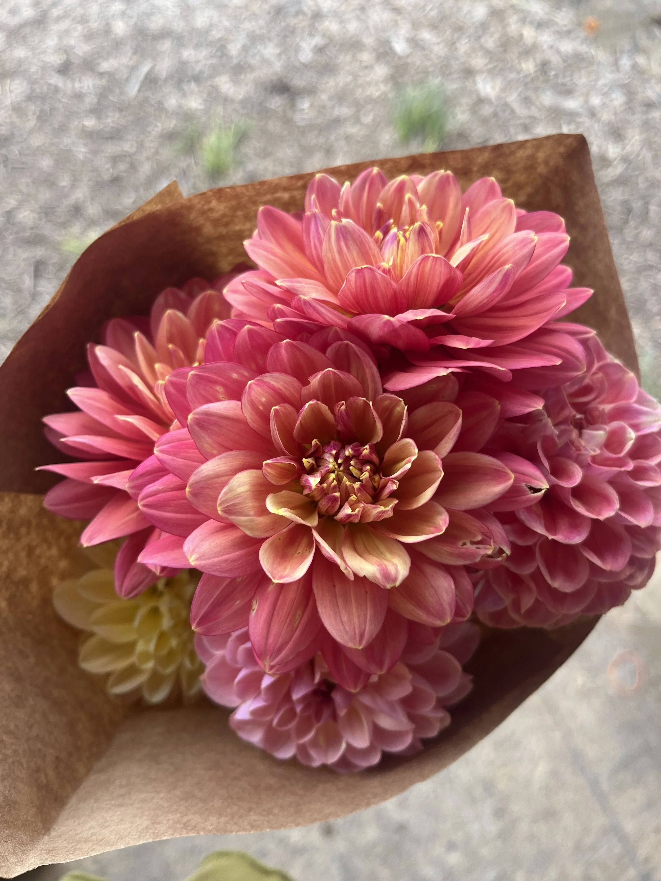 Weekly bouquets featuring dahlias grown at City Farm, and tended by the Central Coast Dahlia Society. Pick-up on Fridays at City Farm SLO.