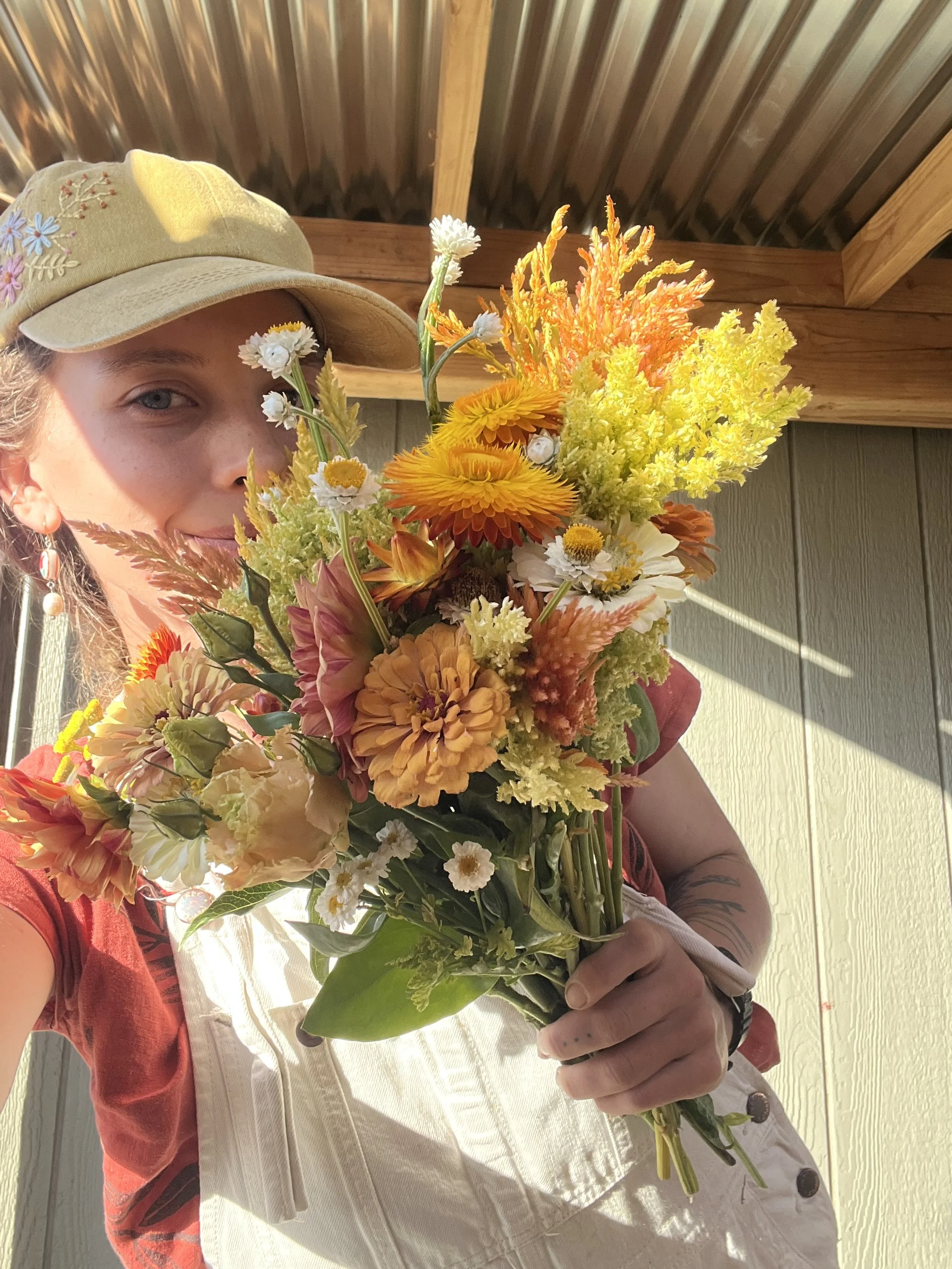 Blooms include annual cut flowers, dahlias, perennials, & native wildflowers. Our favorites are feverfew, yarrow, celosia, scabiosa, cosmos, zinnias, stock, snapdragons, & more. Weekly pick-up at City Farm SLO on Wednesdays or an alternative location [TBD] on Fridays.